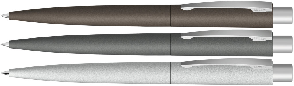 Metall-Druckkugelschreiber mit matter Oberfläche, Metallclip mit eingelassenen Rillen, Metallspitze und Drücker in silber glänzend.Druckbereich: In Clipverlängerung 45mm x 20mm Siebdruck (MS), in Clipverlängerung 50mm x 6mm Lasergravur (L), seitlich vom Clip 80mm x 13mm Siebdruck (MS), seitlich vom Clip 80mm x 6mm Lasergravur (L), gegenüber vom Clip 80mm x 13mm Siebdruck (MS), gegenüber vom Clip 80mm x 6mm Lasergravur (L), in Clipverlängerung 50mm x 6mm Einzelnamensgravur (EL), seitlich vom Clip 80mm x 6mm Einzelnamensgravur (EL), gegenüber vom Clip 80mm x 6mm Einzelnamensgravur (EL)