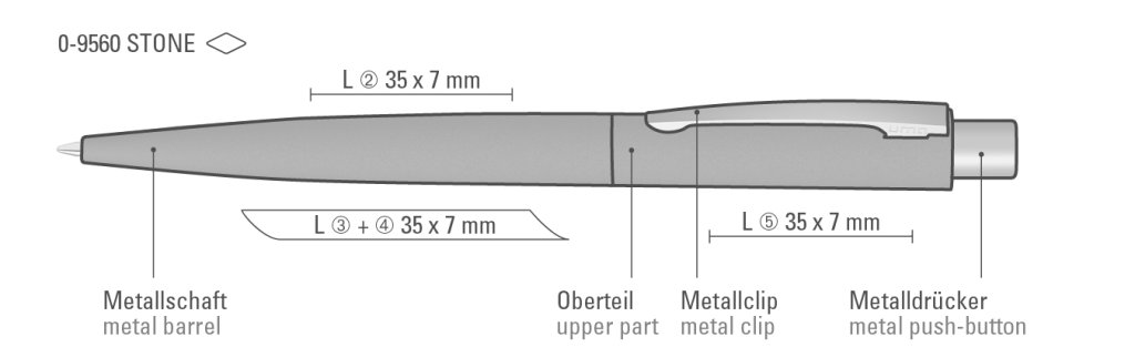 Druckbereich: In Clipverlängerung 35mm x 7mm Lasergravur (L), seitlich vom Clip 35mm x 7mm Lasergravur (L), auf der Kappe/auf dem Oberteil 35mm x 7mm Lasergravur (L), gegenüber vom Clip 35mm x 7mm Lasergravur (L), in Clipverlängerung 35mm x 7mm Einzelnamensgravur (EL), seitlich vom Clip 35mm x 7mm Einzelnamensgravur (EL), auf der Kappe/auf dem Oberteil 35mm x 7mm Einzelnamensgravur (EL), gegenüber vom Clip 35mm x 7mm Einzelnamensgravur (EL)