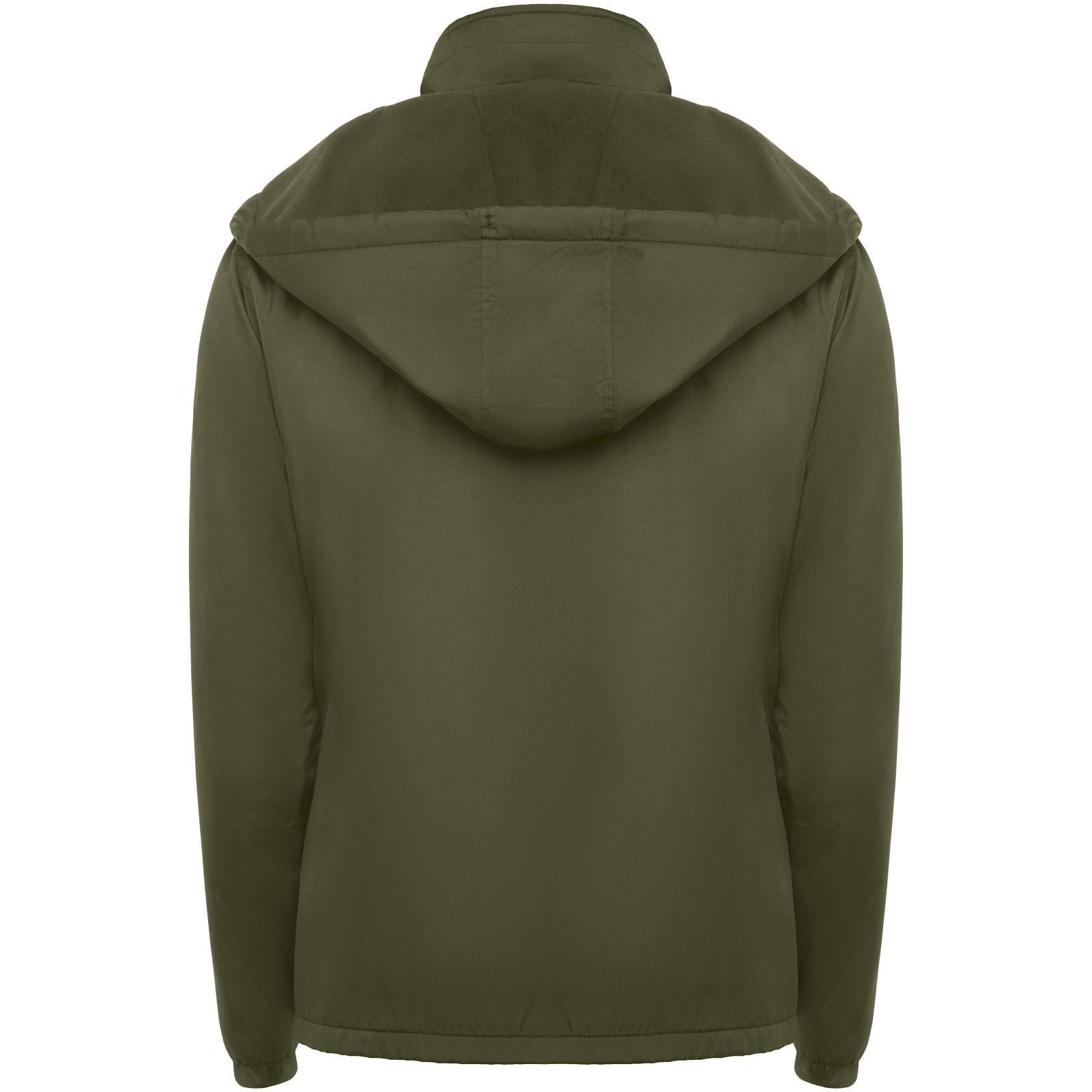 Leichte, wasserabweisende Jacke. Hoher Kragen und einrollbare, verstellbare Kapuze. Innenfutter aus Microfleece. Front-Reißverschluss und Kinnschutz. Elastische Ärmelbündchen. Zwei Seitentaschen mit Reißverschluss. Innere Brusttasche links. Herausnehmbares Etikett. Wasserabweisend. Winddicht. Das männliche Modell ist 184 cm groß und trägt Größe L, das weibliche Modell ist 174 cm groß und trägt Größe S.Besonderheiten:- Mit Reißverschluss: Nein- Geschlecht: Unisex- OEKO-TEX®- SMETAMaterial: 100% Polyester, 85 g/m2, Lining, Microfleece 100% Polyester, 180 g/m2, Padding/filling, 100% Polyester, 65 g/m2Grammatur: 85 g/m2,180 g/m2,65 g/m2Standard-Druck---------------Druckart: TransferdruckDruckposition: linke BrustDruckgröße: 120 x 120 mm mm (BxH)Druckfarben maximal: 1Zusätzliche Informationen: Schauen Sie bitte vor der Bestellung in die Roly Größentabelle. Roly folgt den spanischen Größen, die eine eher slim-fit Passform haben.Suchwörter: roly, Jacke, Jacken, isoliert