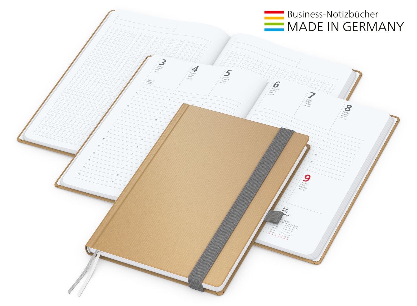 Der Hybrid-Timer für jedes Corporate Design. Individuell bedruckter Einband kombiniert mit Gummiband und Stiftschlaufe in Wunschfarbe. Wochenkalendarium Hochweiß über ein Jahr oder für A5 auch in Creme von August 2024 bis Dezember 2025.