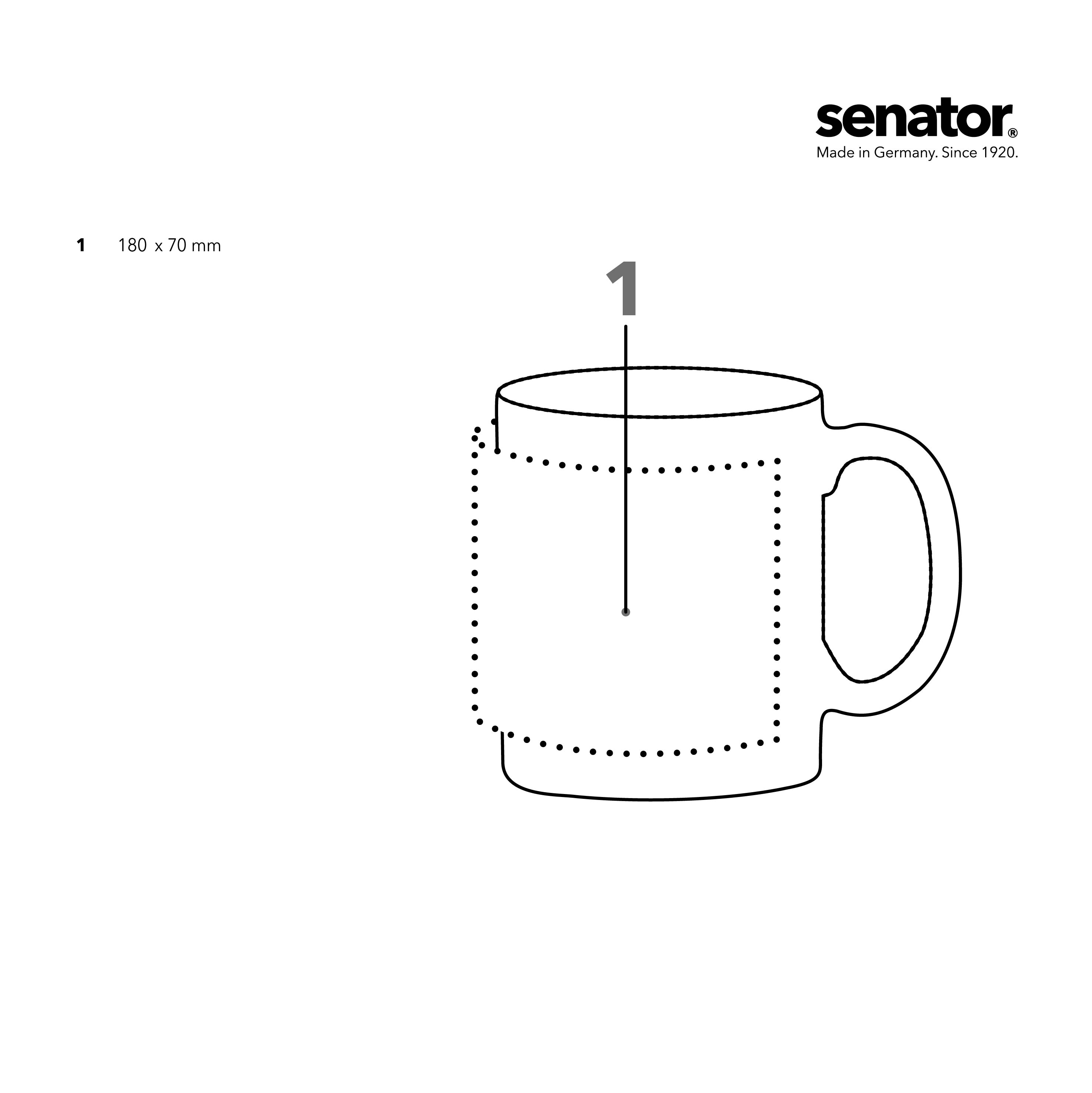 Perfekt für den nächsten Tee oder Kaffee. Der großzügige Henkel, der angenehm rundgeformte Trinkrand und die standfeste Form machen diese Tasse zu einem perfekten Alltags-Begleiter. Füllmenge: 0,35 Liter.Material: KunststoffMaße: 0 x 0 x 185 x Ø: 84,00 mmGewicht: 62 gDruckmöglichkeitenPosition 1: Links vom HenkelDruckart: TampondruckDruckgruppe: TAMCMaximale Farben: 5Durchmesser: 35 mmPosition 2: Rechts vom HenkelDruckart: TampondruckDruckgruppe: TAMCMaximale Farben: 5Durchmesser: 35 mmPosition 3: Gegenüber vom HenkelDruckart: TampondruckDruckgruppe: TAMCMaximale Farben: 5Durchmesser: 35 mm