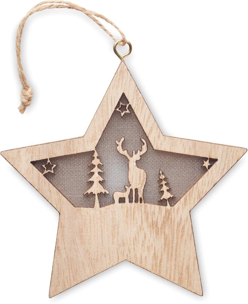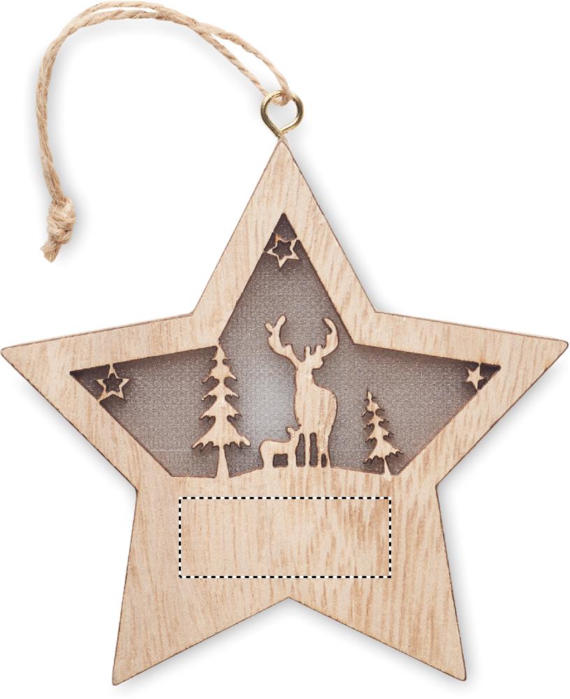 Anhänger aus Holz in Form eines Sterns. Mit rotem Aufhängeband.Material: HolzMaße: 9.5x10x0.5cmGewicht: 0.01 kgFarbe: HolzVeredelung: Bestickung, Bedruckung, BeflockungHandling/Farbcodes: Z/40Druckposition: FRONTDruckmaße: 40 x 40 mmDrucktechniken: L4, P4, S3Druckposition: BACKDruckmaße: 40 x 40 mmDrucktechniken: L4, P4, S3