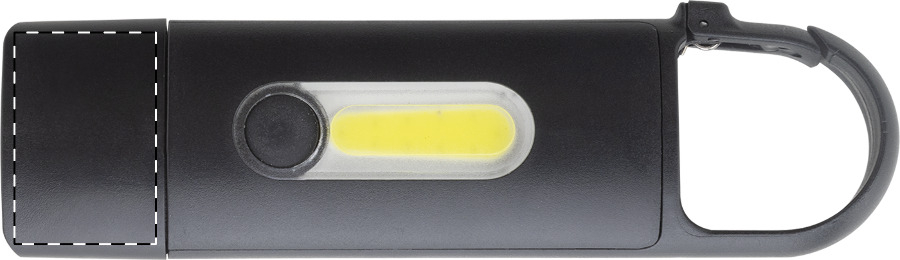 Aluminium, schwarz/schwarz, Batterie inklusive, CE, LED-Farbe weißGewicht: 22,4 gFormat in mm: 155 (L) x 17 (B) x 17 (H)Veredelungsvarianten: LasergravurDruckfläche: 20 x 6 mmHandling: BMaterial: Aluminium
