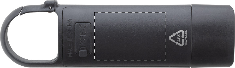 Mini-Taschenlampe aus recyceltem ABS mit eingebautem USB-Akku (200 mAh) und Karabiner. Mit COB-Licht vorne und COB-Flutlicht an der Seite. Mit 3 Leuchtmodi. Inklusive USB-Ladekabel.