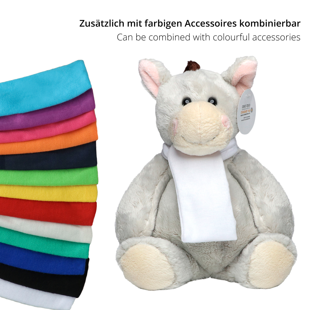 Manchmal ist Oberbekleidung für ein Plüschtier nicht die richtige Wahl, denn Werbung soll ins Auge fallen. Ein Schal ist bei sitzenden Tieren, die einen T-Shirt-Aufdruck mit ihren Vorderbeinen verdecken würden, die richtige Wahl, um ihre Werbung optimal in Szene zu setzen. Wir haben für jedes unserer Plüschtiere das passende Outfit, damit ihre Werbung auffällt und in Erinnerung bleibt. Erhältlich in verschiedenen Farben und Größen. Geprüft auf Schadstoffe (OEKO-TEX®, A08-0261 Hohenstein HTTI, oeko-tex.com/standard100). Maße: Länge: 35 cm, Breite: 4 cm, Höhe: 0,30 cmMaterial: Haupt100% PolyesterGewicht: 7 gPflegehinweise:Nicht bügelnMaximale Waschtemperatur 30°C, SchonwaschgangNicht BleichenNicht trockenreinigenNicht im Wäschetrockner/Tumbler trocknenAuszeichnung/Zertifizierung: OEKO-TEX®Veredelung: Direkttransferdruck [plus] (DTplus)Größe: 25x50 mmFarben: 4