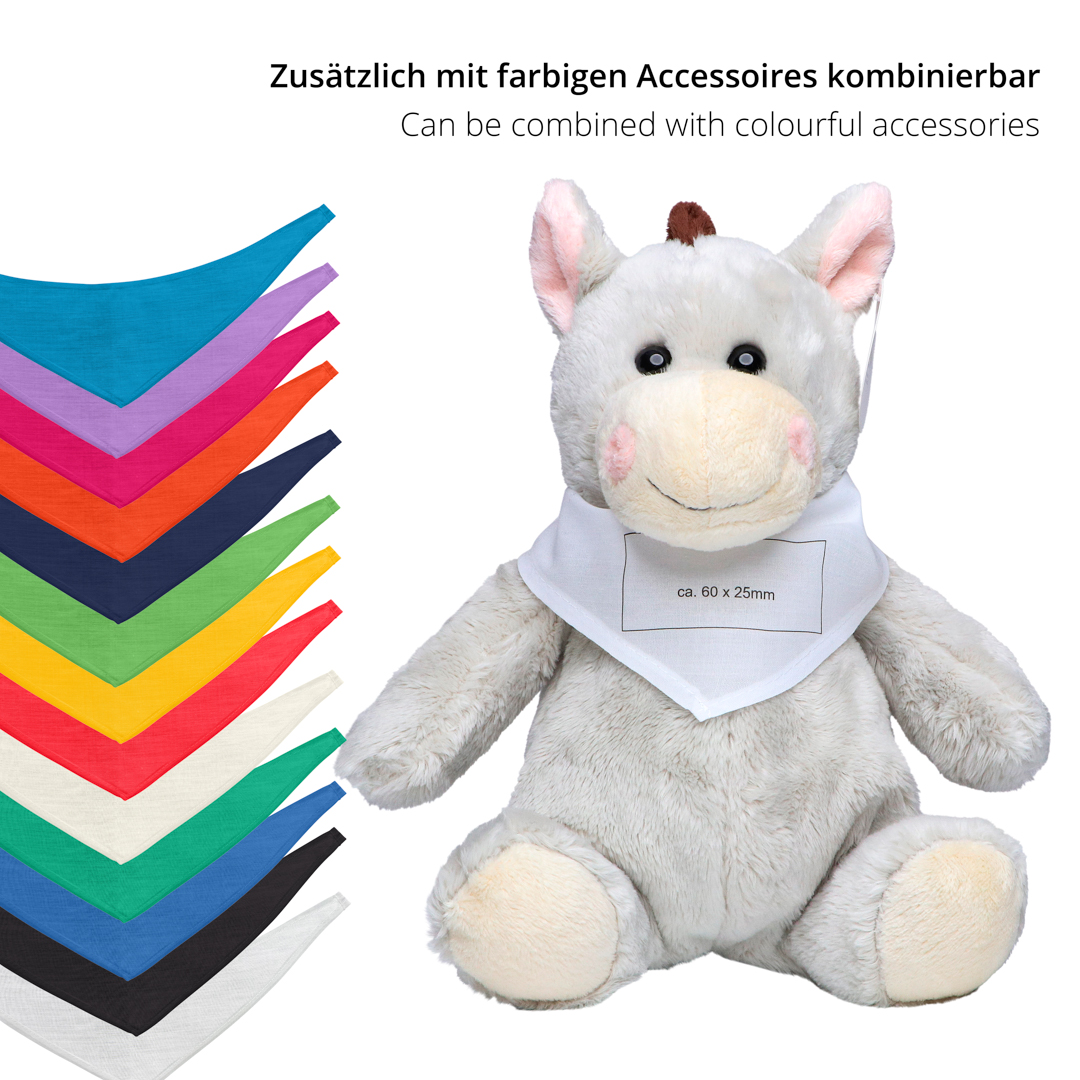 Ein Dreiecktuch ist bei sitzenden Tieren, die einen T-Shirt-Aufdruck mit ihren Vorderbeinen verdecken würden, die richtige Wahl, um Werbung optimal in Szene zu setzen. Wir haben für jedes unserer Plüschtiere das passende Outfit, damit ihre Werbung auffällt und in Erinnerung bleibt. Erhältlich in verschiedenen Farben und Größen. Maße: Länge: 21,50 cm, Breite: 6,50 cm, Höhe: 0,20 cmMaterial: Haupt100% PolyesterGewicht: 1 gPflegehinweise:Nicht bügelnMaximale Waschtemperatur 30°C, SchonwaschgangNicht BleichenNicht trockenreinigenNicht im Wäschetrockner/Tumbler trocknenVeredelung: Direkttransferdruck [plus] (DTplus)Größe: 40x20 mmFarben: 4