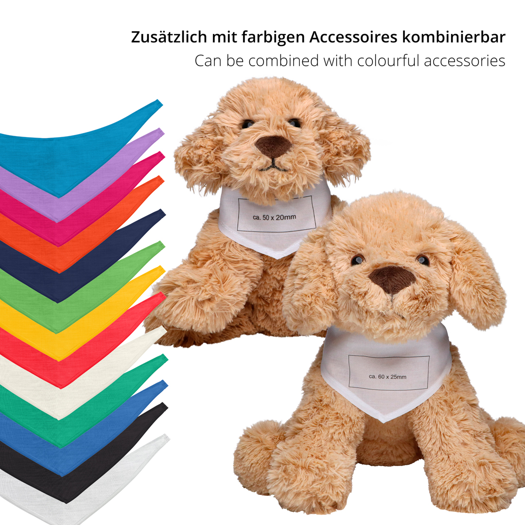 Ein Dreiecktuch ist bei sitzenden Tieren, die einen T-Shirt-Aufdruck mit ihren Vorderbeinen verdecken würden, die richtige Wahl, um Werbung optimal in Szene zu setzen. Wir haben für jedes unserer Plüschtiere das passende Outfit, damit ihre Werbung auffällt und in Erinnerung bleibt. Erhältlich in verschiedenen Farben und Größen. Maße: Länge: 21,50 cm, Breite: 6,50 cm, Höhe: 0,20 cmMaterial: Haupt100% PolyesterGewicht: 1 gPflegehinweise:Nicht bügelnMaximale Waschtemperatur 30°C, SchonwaschgangNicht BleichenNicht trockenreinigenNicht im Wäschetrockner/Tumbler trocknenVeredelung: Direkttransferdruck [plus] (DTplus)Größe: 40x20 mmFarben: 4