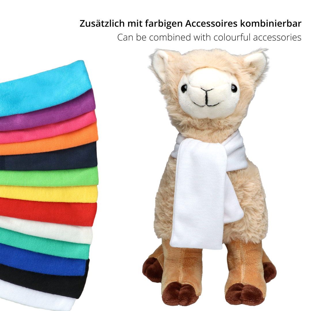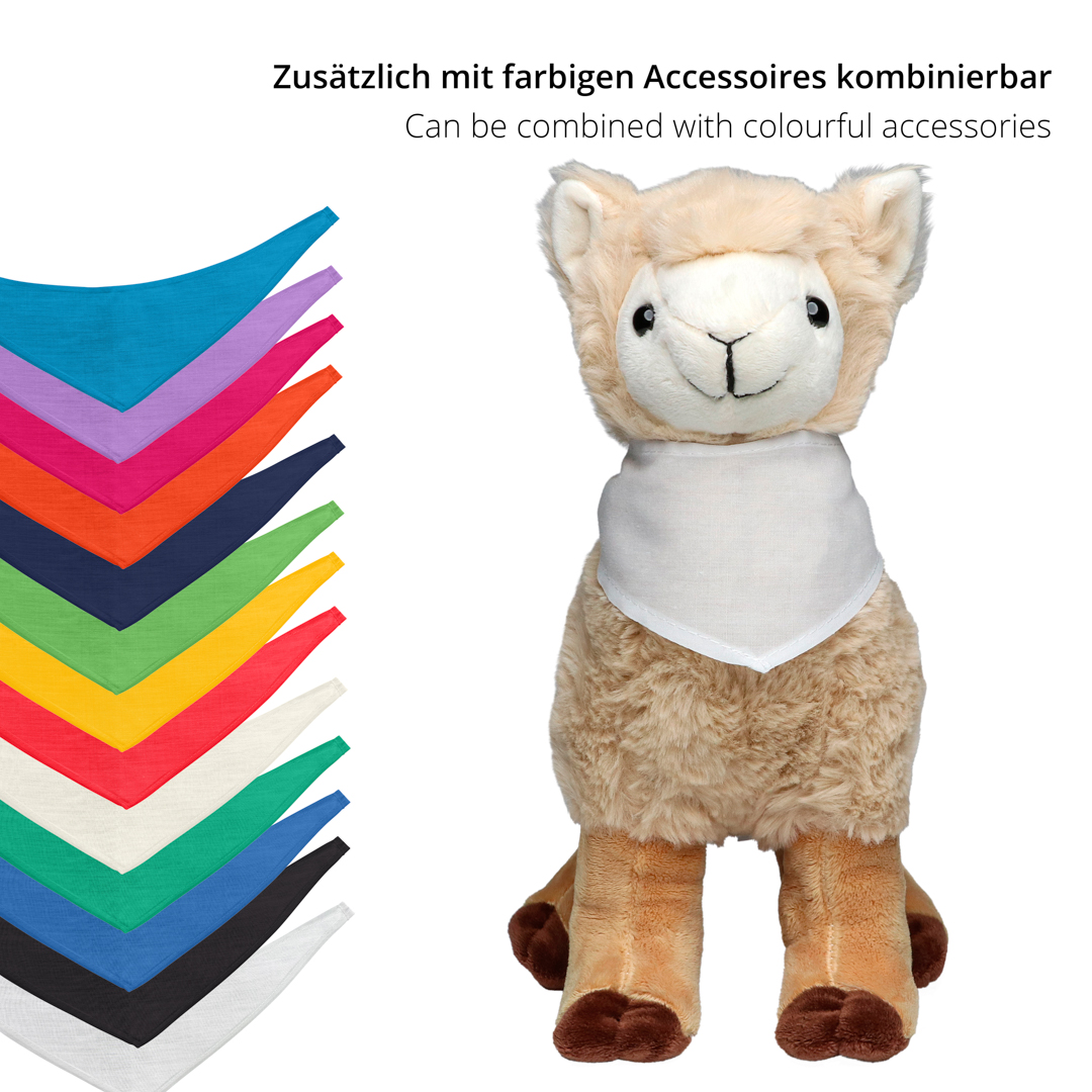 Schadstofffreie Kuschelhelden und geprüfte Sicherheit für Kinder und Erwachsene: Unser kuschelweiches wie anschmiegsames Lama bringt positive Emotionen in Kinder-, Schlaf- und Wohnzimmer. Für Logoanbringung oder Werbung existieren vielfältige Möglichkeiten, neben angenähten Domings oder einer Werbefahne auch bedruckbare Mode und Accessoires für Kuscheltiere wie T-Shirts, Dreieckstücher und Schals.