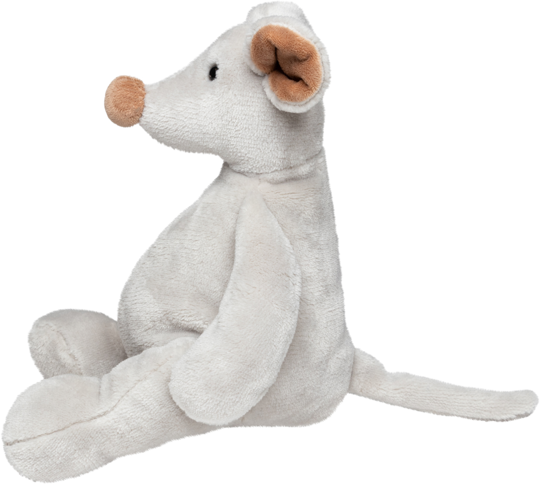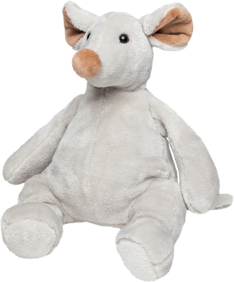 Aufmerksam schauen die Kulleraugen von Plüsch Maus Mirja, als würde sie nur darauf warten, dass man sie auf den Arm nimmt und mal richtig mit ihr kuschelt. Die Plüschnase und das breite Lächeln geben ihr ein weiches, verschmustes Aussehen. Dank ihres beschwerten Popos, kann sie überall sitzen und weil ihre langen, weichen Beine und die großen Füße auch so gut zum Baumeln geeignet sind, kann sie ebenso lässig auf (Tisch-, Schrank-,...) Kanten hocken.