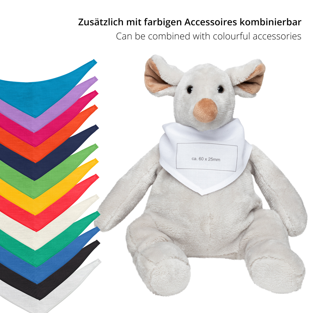 Ein Dreiecktuch ist bei sitzenden Tieren, die einen T-Shirt-Aufdruck mit ihren Vorderbeinen verdecken würden, die richtige Wahl, um Werbung optimal in Szene zu setzen. Wir haben für jedes unserer Plüschtiere das passende Outfit, damit ihre Werbung auffällt und in Erinnerung bleibt. Erhältlich in verschiedenen Farben und Größen. Maße: Länge: 21,50 cm, Breite: 6,50 cm, Höhe: 0,20 cmMaterial: Haupt100% PolyesterGewicht: 1 gPflegehinweise:Nicht bügelnMaximale Waschtemperatur 30°C, SchonwaschgangNicht BleichenNicht trockenreinigenNicht im Wäschetrockner/Tumbler trocknenVeredelung: Direkttransferdruck [plus] (DTplus)Größe: 40x20 mmFarben: 4