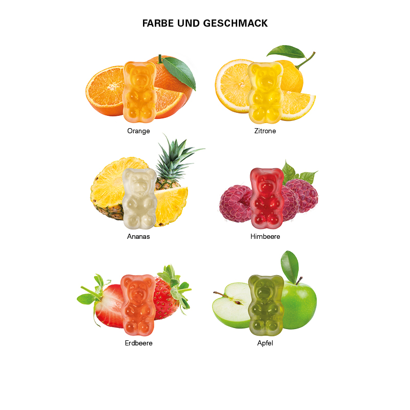Sorten: Orange, Zitrone, Ananas, Himbeere, Erdbeere, Apfel - bunt gemischt