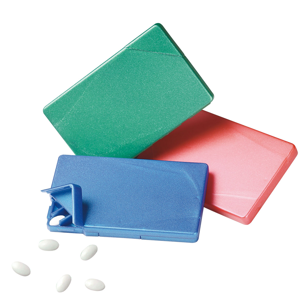 Immer gut welche zu haben. Flachbox mit Bonbonspender. Deutsche Produktion mit Mint Bonbons gefüllt. Ohne Zucker, nachfüllbar. Lieferung ohne Druck.