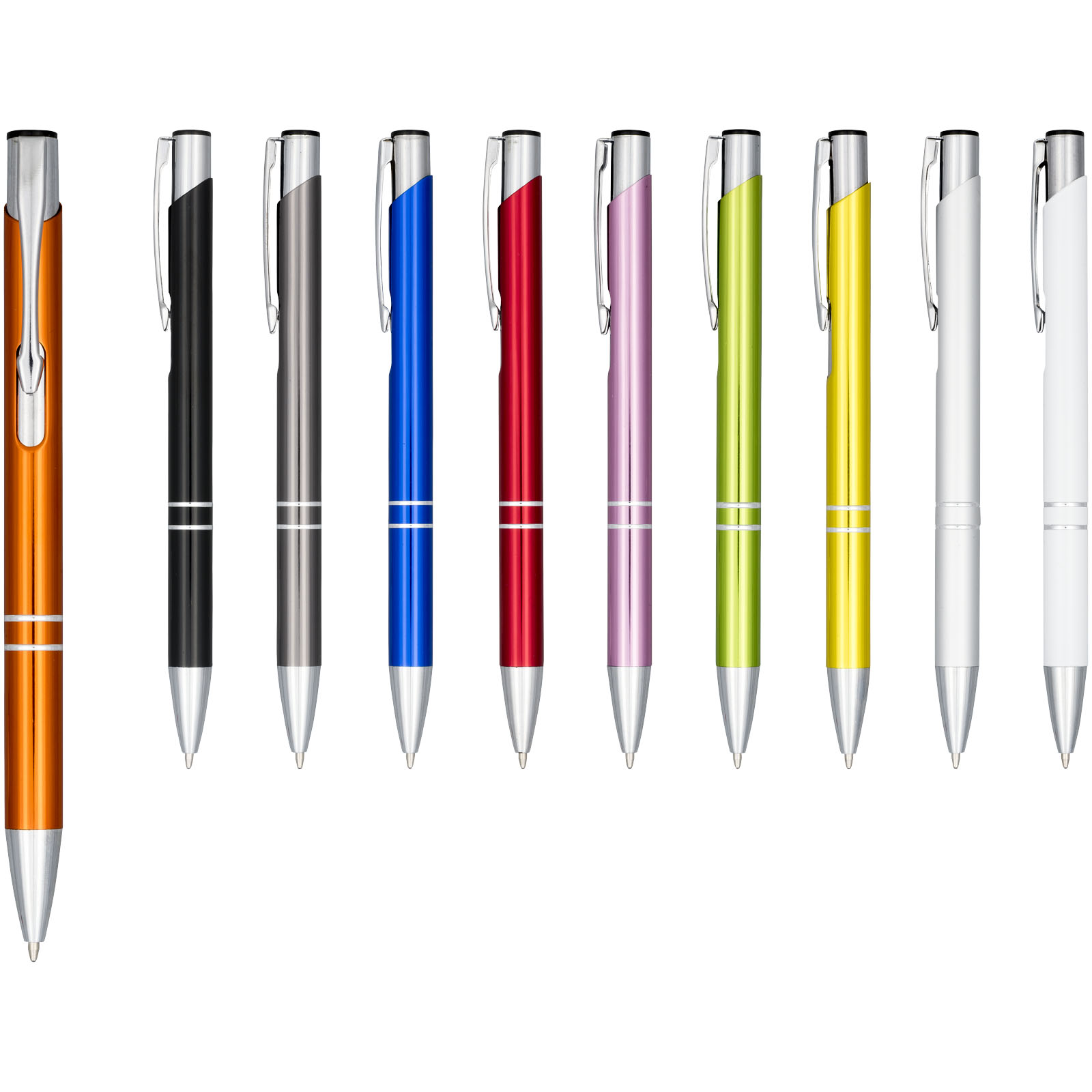 Kugelschreiber mit Klickmechanismus, Aluminiumschaft, ABS-Teilen und Stahlclip. Der Stift ist in einer Vielzahl von Farben erhältlich und hat eine eloxierte Oberfläche, die ihm einen markanten Glanz verleiht. Das umfangreiche und beliebte Moneta-Sortiment ist in vielen verschiedenen Stilen und Ausführungen erhältlich.
