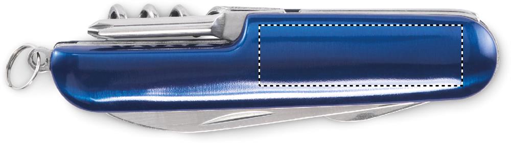 Multi-Tool-Taschenmesser aus recyceltem Aluminium. 5 Funktionen: Große Klinge, Kapselheber, Schraubendreher, Korkenzieher und Dosenöffner.Material: Recyceltes AluminiumMaße: 8,5x2,5cmGewicht: 0.055 kgVeredelung: Bestickung, Bedruckung, BeflockungHandling/Farbcodes: B/03, 04, 14Druckposition: FRONTDruckmaße: 40 x 12 mmDrucktechniken: L2, P4Druckposition: BACKDruckmaße: 40 x 12 mmDrucktechniken: L2, P4