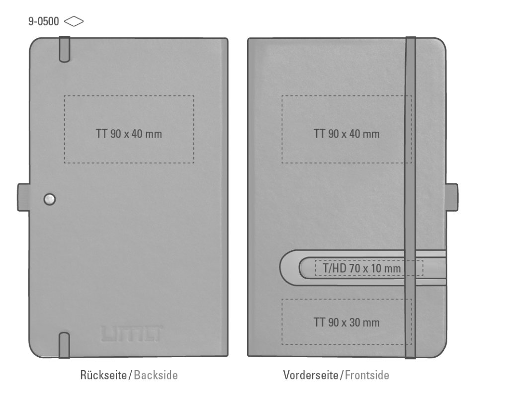 Druckbereich: Druckfläche 90mm x 40mm Tampondruck Sonderformat (TT), Druckfläche 90mm x 30mm Tampondruck Sonderformat (TT), Druckfläche 70mm x 10mm Tampondruck (T), Druckfläche 70mm x 10mm Digitaldruck (HD)