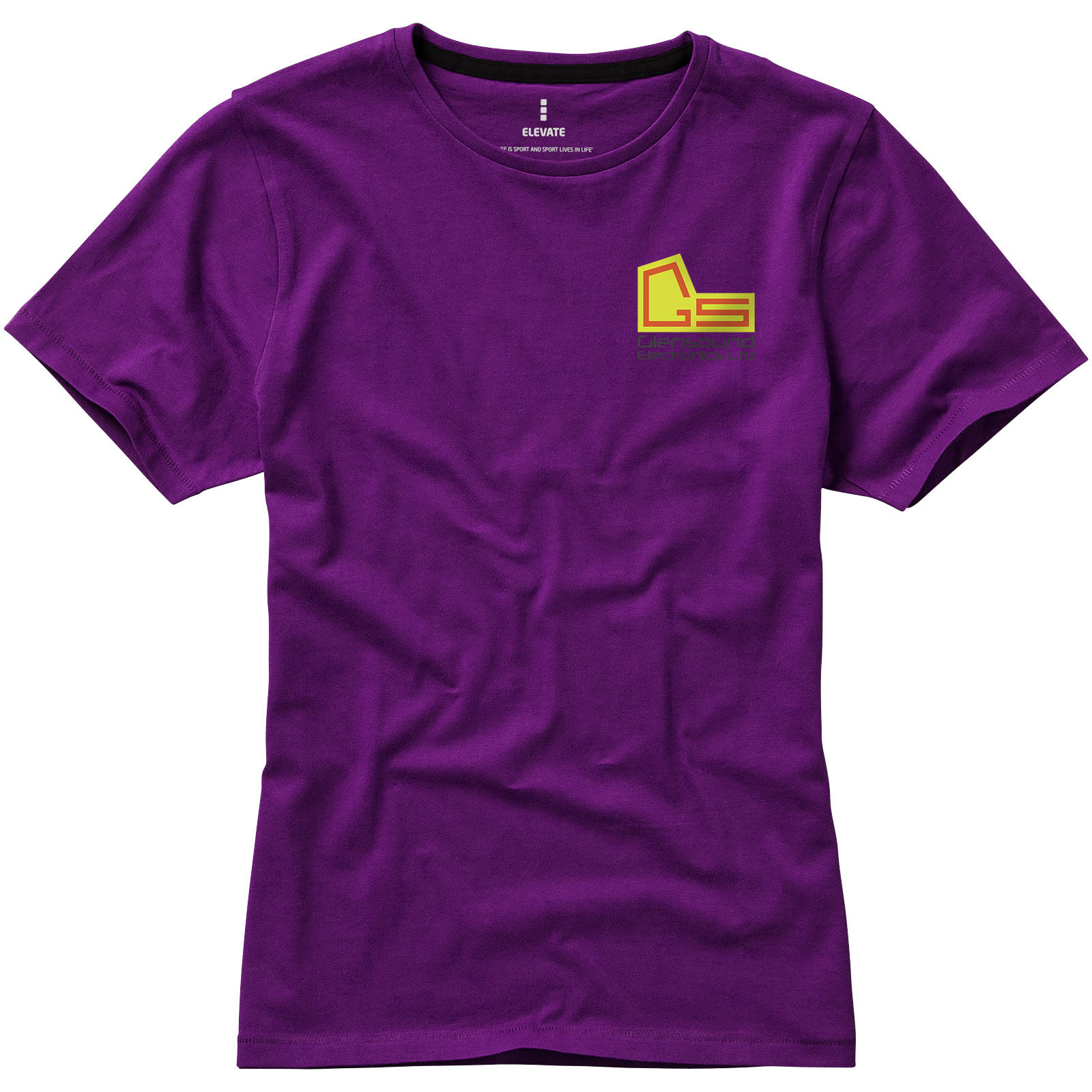 Das kurzärmelige Nanaimo Damen-T-Shirt aus 160 g/m2 Baumwolle ist perfekt für jede Gelegenheit und eine bequeme Ergänzung für jeden Kleiderschrank. Die ringgesponnene Baumwolle sorgt für ein stärkeres und glatteres Garn, was zu einem haltbareren Stoff führt, der ein hochwertiges Branding garantiert. Der feminine Schnitt und die Seitennähte sorgen für eine gute Passform, während das aufgedruckte Elevate-Branding im Nacken für zusätzlichen Komfort sorgt. Die verstärkten Schultern sorgen auch nach längerem Gebrauch für einen kontinuierlichen Sitz.