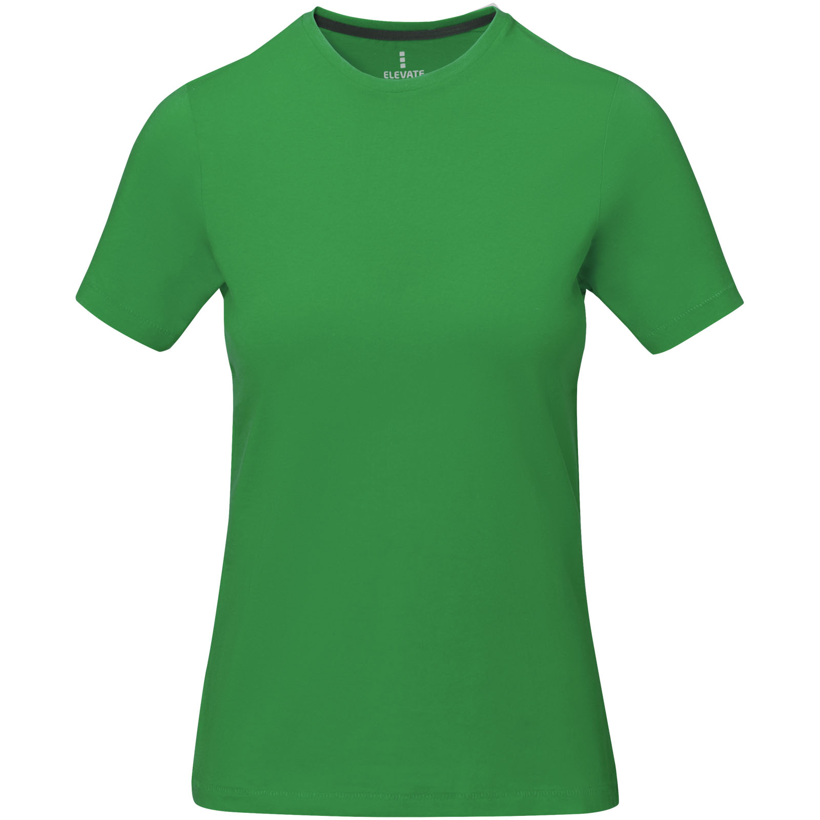 Das kurzärmelige Nanaimo Damen-T-Shirt aus 160 g/m2 Baumwolle ist perfekt für jede Gelegenheit und eine bequeme Ergänzung für jeden Kleiderschrank. Die ringgesponnene Baumwolle sorgt für ein stärkeres und glatteres Garn, was zu einem haltbareren Stoff führt, der ein hochwertiges Branding garantiert. Der feminine Schnitt und die Seitennähte sorgen für eine gute Passform, während das aufgedruckte Elevate-Branding im Nacken für zusätzlichen Komfort sorgt. Die verstärkten Schultern sorgen auch nach längerem Gebrauch für einen kontinuierlichen Sitz.