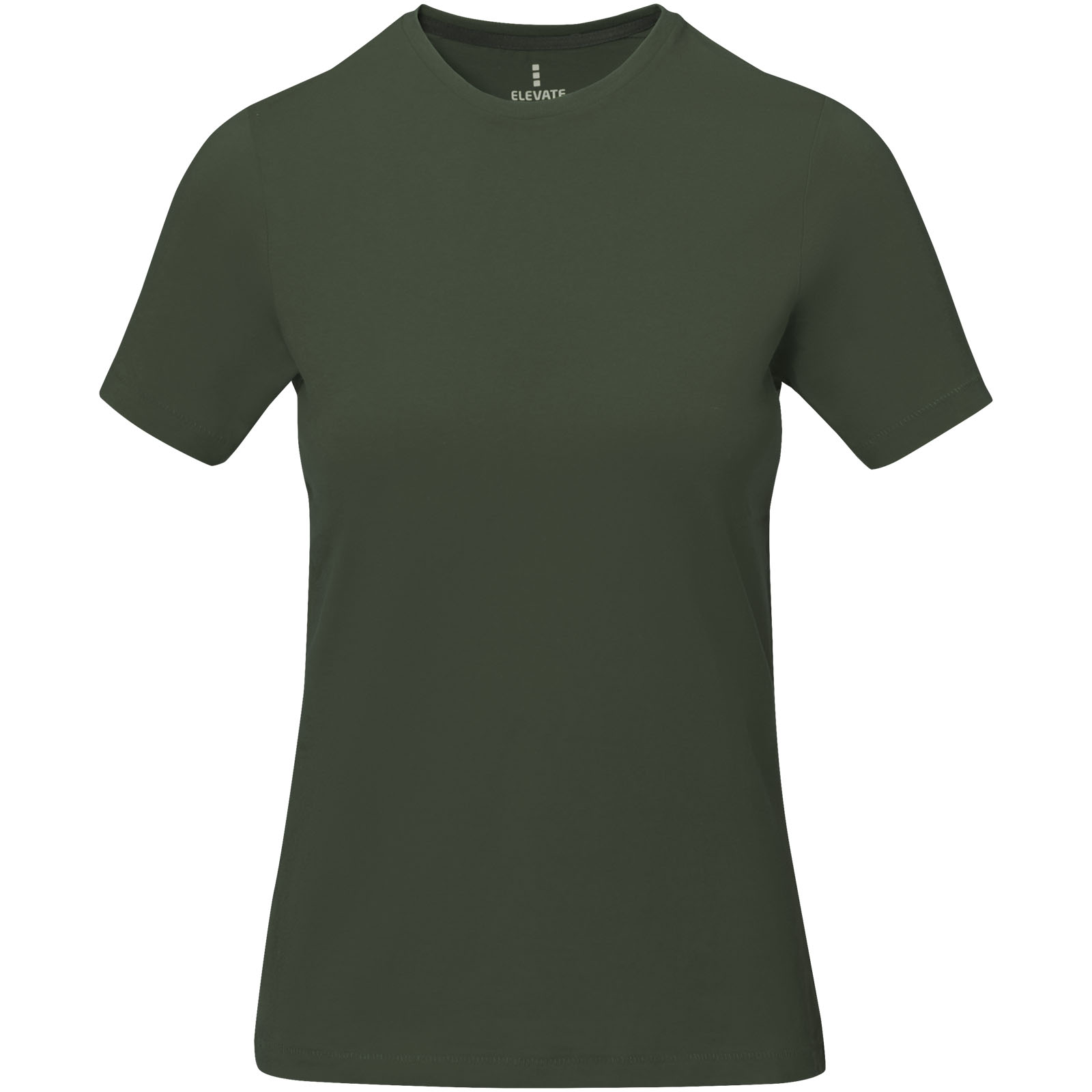 Das kurzärmelige Nanaimo Damen-T-Shirt aus 160 g/m2 Baumwolle ist perfekt für jede Gelegenheit und eine bequeme Ergänzung für jeden Kleiderschrank. Die ringgesponnene Baumwolle sorgt für ein stärkeres und glatteres Garn, was zu einem haltbareren Stoff führt, der ein hochwertiges Branding garantiert. Der feminine Schnitt und die Seitennähte sorgen für eine gute Passform, während das aufgedruckte Elevate-Branding im Nacken für zusätzlichen Komfort sorgt. Die verstärkten Schultern sorgen auch nach längerem Gebrauch für einen kontinuierlichen Sitz.
