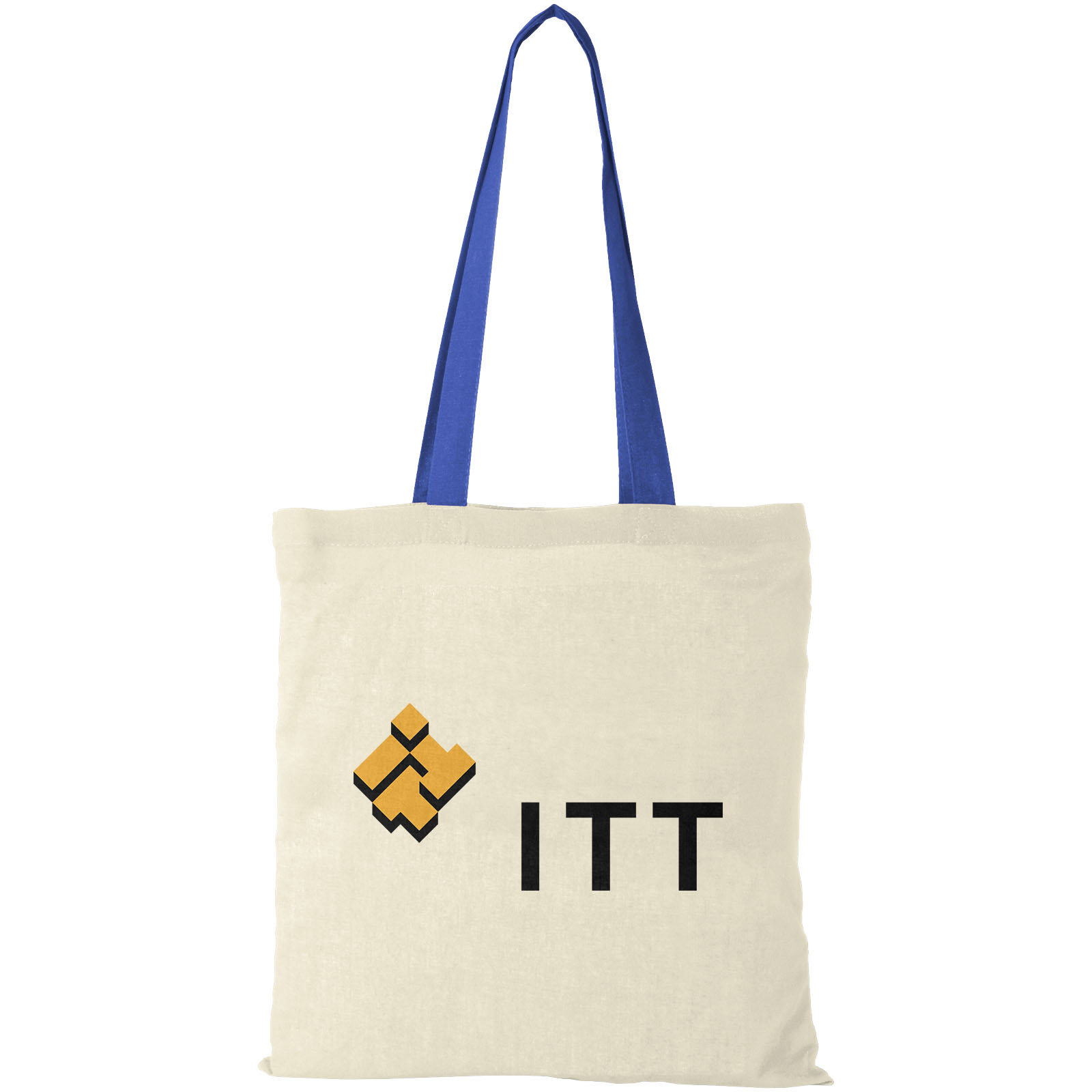 Mit ihren farbenfrohen Tragegriffen setzt diese Tasche auf jeder Veranstaltung, jedem Kongress und jedem Festival einen Farbakzent. Die Nevada Tote Bag aus 100 g/m² Baumwolle ist eine preisgünstige und leichte Tasche mit einem offenen Hauptfach. Mit ihrem Fassungsvermögen von 7 Litern eignet sich diese Tasche perfekt für den Transport von alltäglichen Dingen, vom Telefon und der Geldbörse bis hin zum Lieblingsbuch oder Tablet. Dank der 30 cm langen Griffe lässt sich die Tasche gut tragen. Hergestellt in Indien und OEKO-Tex zertifiziert. Belastbar bis zu 5 kg Gewicht.