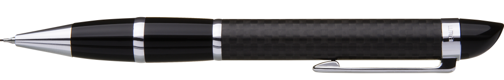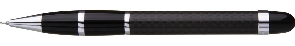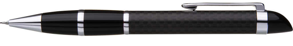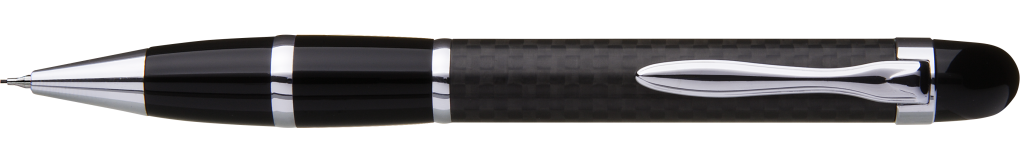 Edler Carbonfaser Metalldrehbleistift (0,7mm) mit farbiger Griffzone, flexiblem Metallclip, Metallzierring und Metallspitze glanzverchromt.