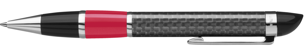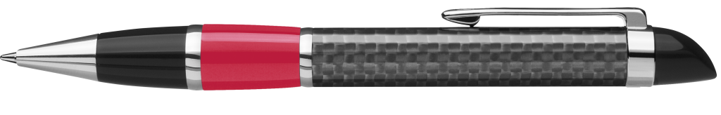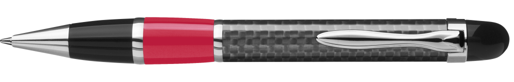 Edler Carbonfaser Metalldrehkugelschreiber mit farbiger Griffzone, flexiblem Metallclip, Metallzierring und Metallspitze glanzverchromt.Druckbereich: Gegenüber vom Clip 40mm x 13mm Siebdruck (MS), seitlich vom Clip 40mm x 7mm Siebdruck (MS)