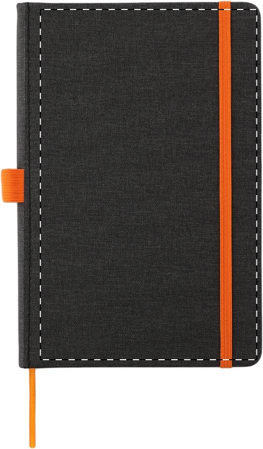 Notizbuch mit strukturiertem Kunstledereinband, farblich aufeinander abgestimmten Lesezeichen, Gummiband und Stiftehalter. 96 Blätter (liniert), Größe A5.