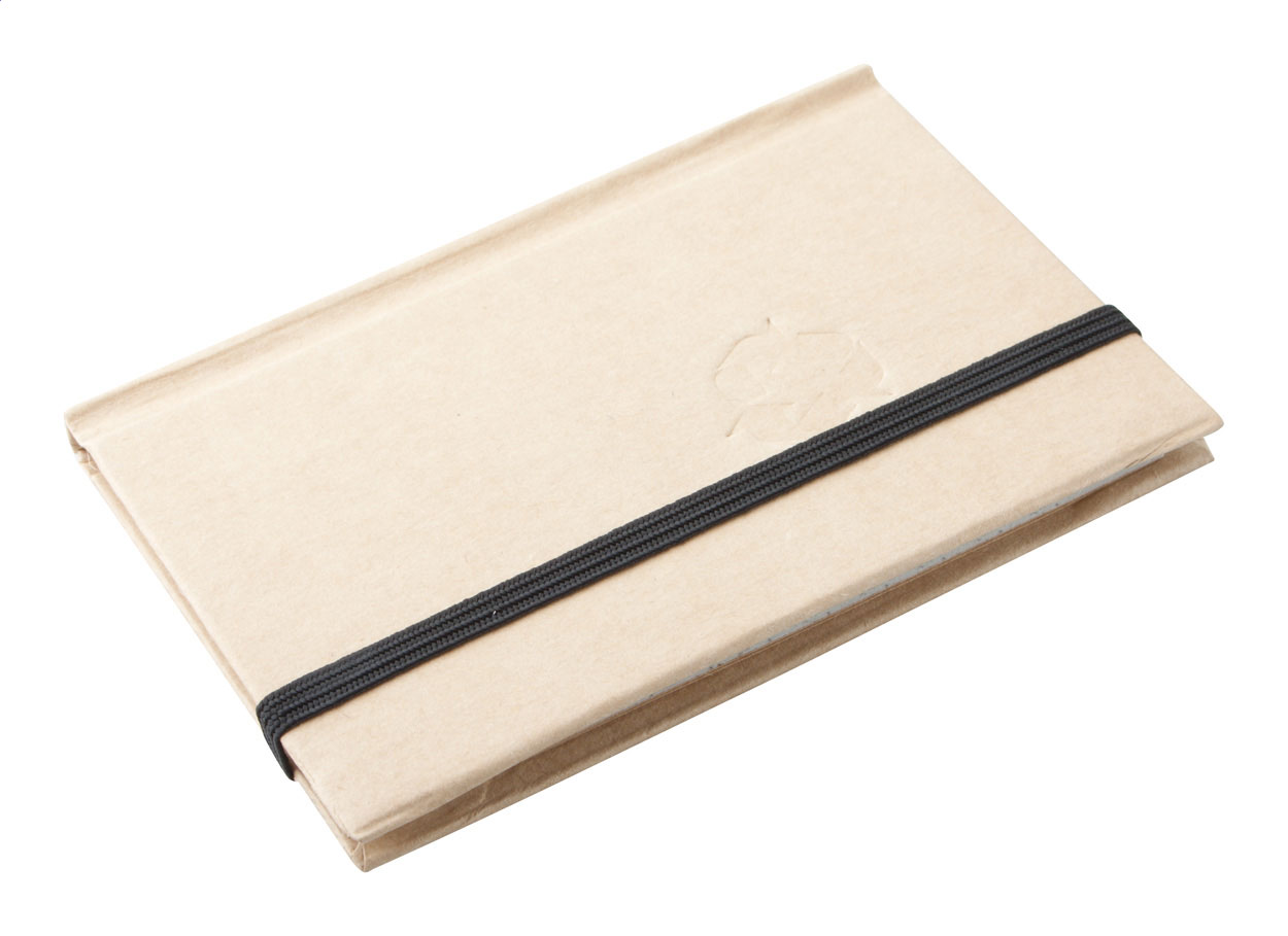 A7 Notizbuch aus Recycling Papier, 60 Seiten (liniert) mit Gummiband.