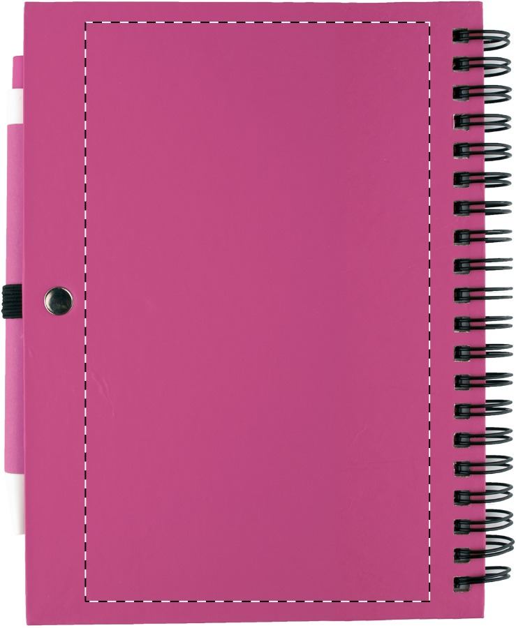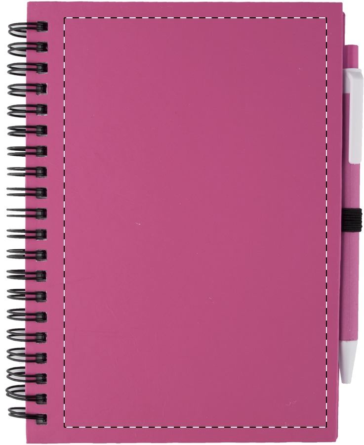 Notizbuch aus Karton, 70 Seiten (blanko), mit farblich abgestimmtem Kugelschreiber aus Recyclingpapier (blauschreibend).Maße: 150×182×19 mmSchreibgerät-Typ: KugelschreiberSchreibfarbe: BlauLinienstärke: 1 mmMaterial: Karton, Recycling PapierGewicht: 70 g/m2Veredelungsposition 1: VorderseiteTechnologie: TampondruckMaximale Farben: 4Durchmesser: 0Druckcode: P2Technologie: SiebdruckMaximale Farben: 2Durchmesser: 0Druckcode: S1Veredelungsposition 2: RückseiteTechnologie: TampondruckMaximale Farben: 4Durchmesser: 0Druckcode: P2Technologie: SiebdruckMaximale Farben: 2Durchmesser: 0Druckcode: S1Veredelungsposition 3: Korpus - rechts vom ClipTechnologie: TampondruckMaximale Farben: 2Durchmesser: 0Druckcode: P2Veredelungsposition 4: Korpus - links vom ClipTechnologie: TampondruckMaximale Farben: 2Durchmesser: 0Druckcode: P2