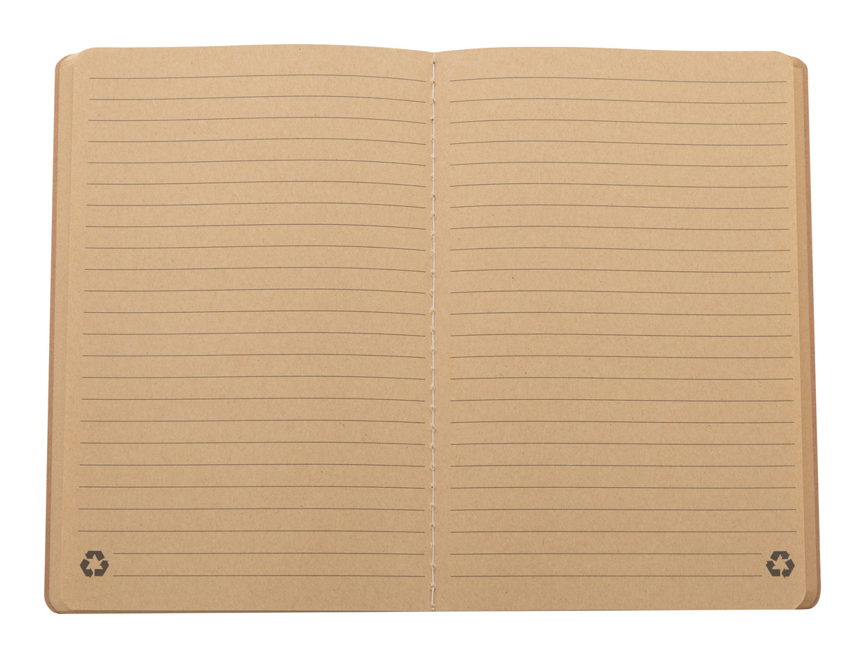 Notizbuch mit Umschlag aus recyceltem Papier und genähter Bindung, enthält 60 Blankoseiten aus recyceltem Kraftpapier. Format: A5.Maße: 140×210×8 mmFormat: A5Papiertyp Notizbücher: Blanko SeitenMaterial: Recycling Papier, PapierVeredelungsposition 1: VorderseiteTechnologie: TampondruckMaximale Farben: 4Durchmesser: 0Druckcode: P1Technologie: SiebdruckMaximale Farben: 2Durchmesser: 0Druckcode: S1Veredelungsposition 2: RückseiteTechnologie: TampondruckMaximale Farben: 4Durchmesser: 0Druckcode: P1Technologie: SiebdruckMaximale Farben: 2Durchmesser: 0Druckcode: S1