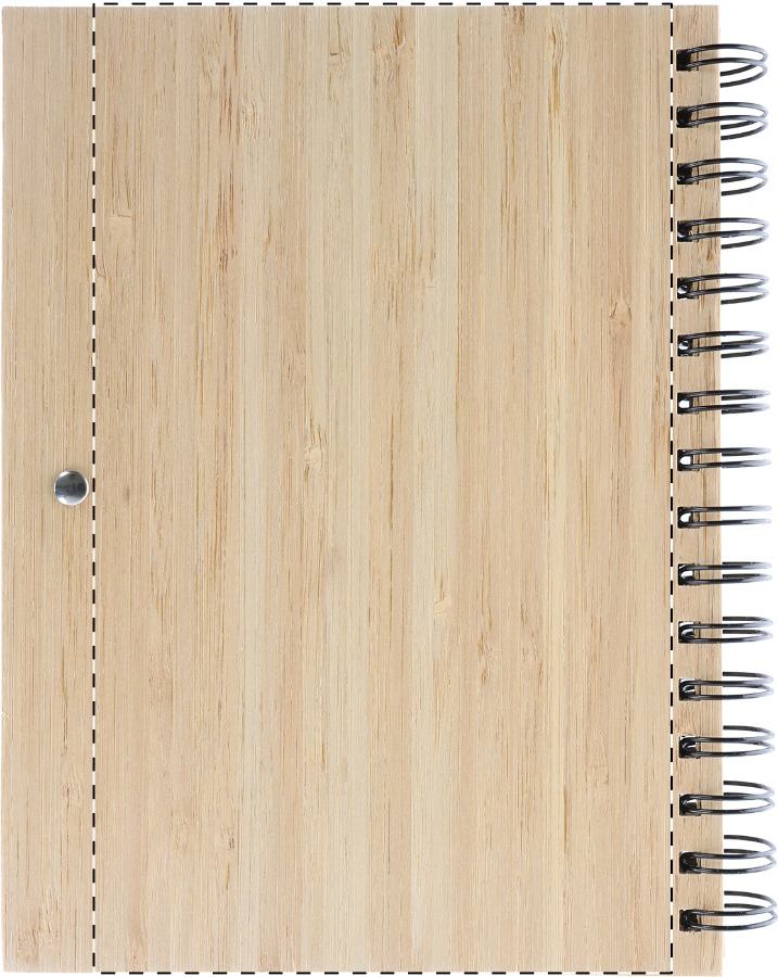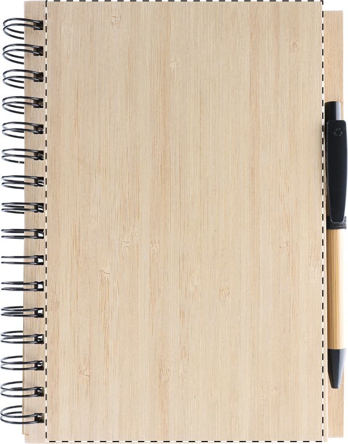 Spiral-Notizbuch mit Bambusumschlag. Mit Bambuskugelschreiber, schwarzschreibend. 80 Seiten (liniert), Größe A5.