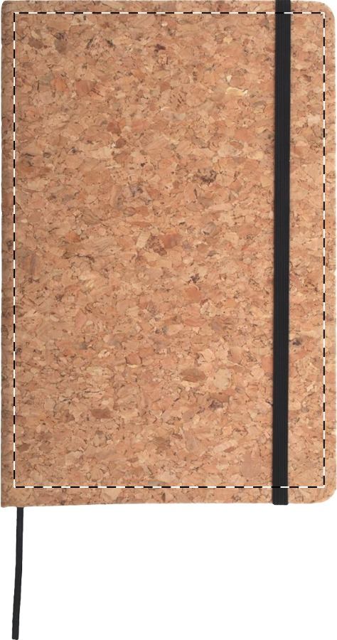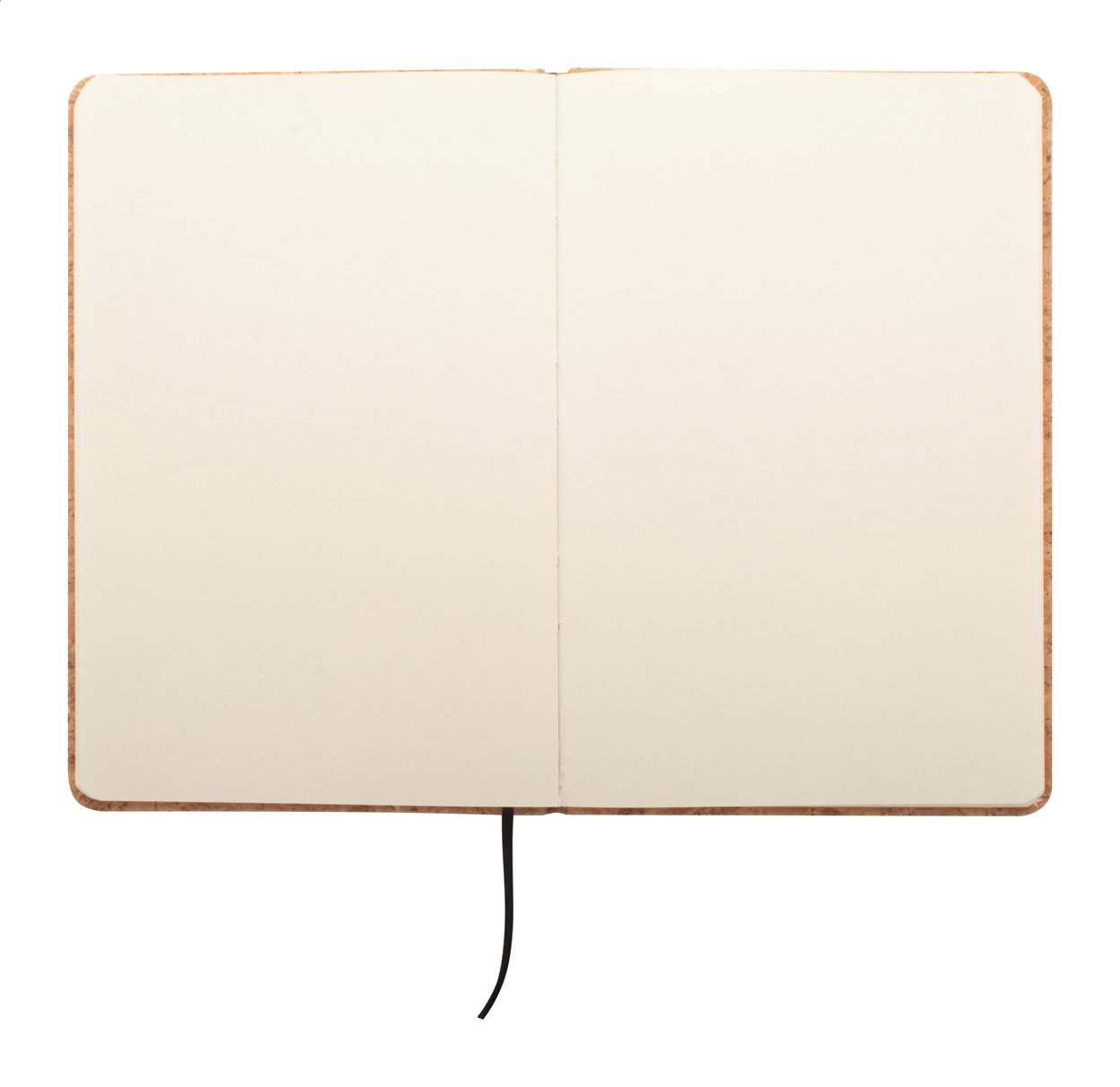 Notizbuch mit Korkeinband, 80 Seiten (blanko) und Gummiband, A5-Format.