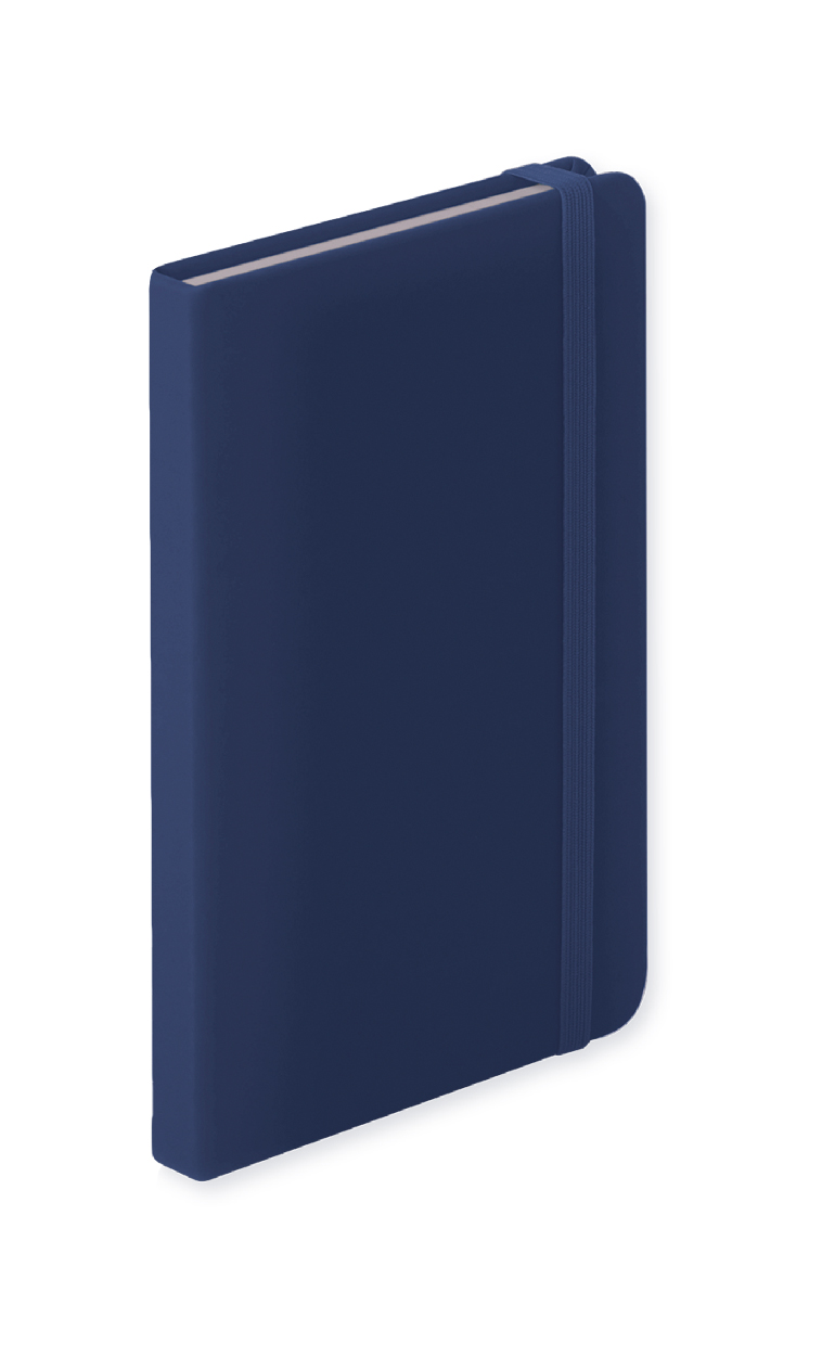 Notizbuch mit Kunstleder-Einband, 100 Seiten (liniert) mit Lesezeichen und Gummiband. A6-Größe.