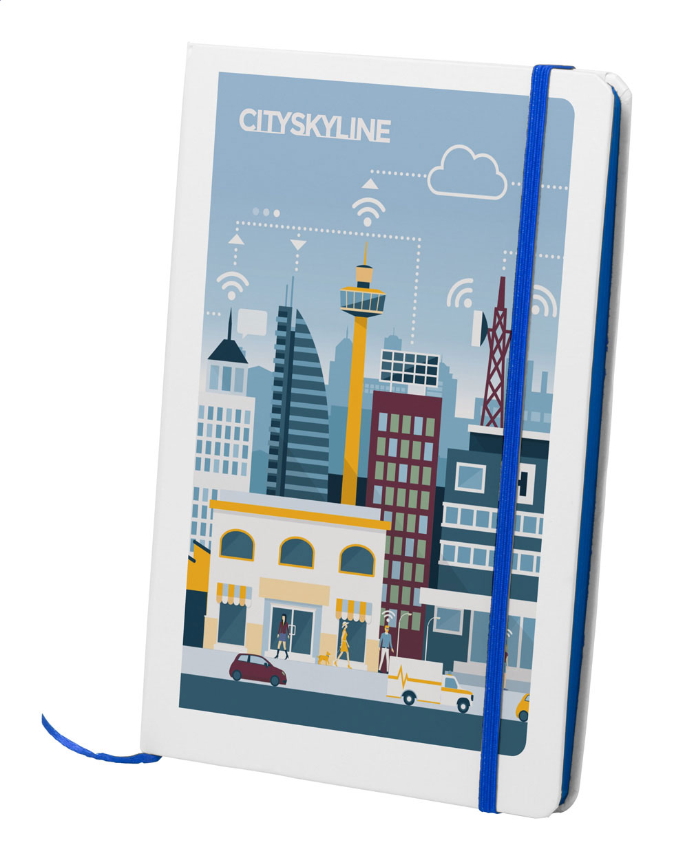 Fester Einband, ca. 80 Blatt kariertes Papier, mit elastischem Verschluss- und LesebandSuchbegriffe: NotizbuchMaße: 140 x 90 x 13 mmGewicht: 104 gMaterial: PVC, PapierVeredelung: Siebdruck, DigitaldruckDruckcodes: S/B (2), D/DBVeredelung 1------------Platzierung: Vorderseite (1)Druckfläche: 70 x 120 mmDruckart: SiebdruckDruckgruppe, Druckcode: B, S/BDruckfarben max.: 2Veredelung 2------------Platzierung: Rückseite (2)Druckfläche: 44 x 120 mmDruckart: SiebdruckDruckgruppe, Druckcode: B, S/BDruckfarben max.: 2Veredelung 3------------Platzierung: Vorderseite (1)Druckfläche: 87 x 137 mmDruckart: DigitaldruckDruckgruppe, Druckcode: DB, D/DB