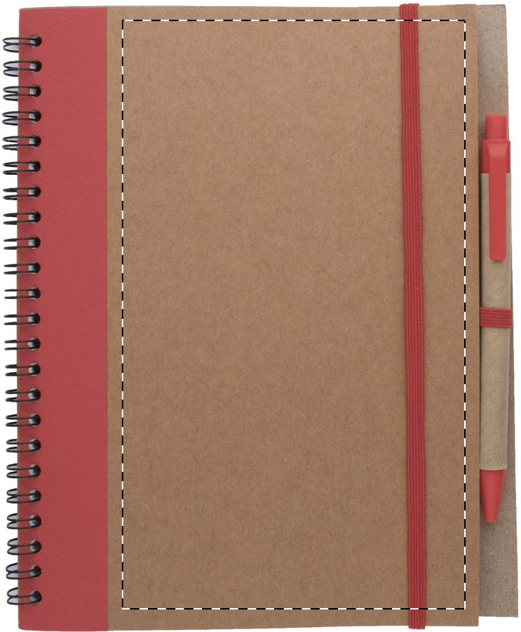 A5 Spiral-Notizbuch, 60 Seiten (blanko) und Kugelschreiber, blauschreibend, aus Recyclingpapier.Maße: 165×210×10 mmSchreibgerät-Typ: KugelschreiberSchreibfarbe: BlauLinienstärke: 1 mmMaterial: Recycling PapierGewicht: 70 g/m2Veredelungsposition 1: VorderseiteTechnologie: TintenstrahldruckDurchmesser: 0Druckcode: OPTechnologie: TampondruckMaximale Farben: 4Durchmesser: 0Druckcode: P2Technologie: SiebdruckMaximale Farben: 2Durchmesser: 0Druckcode: S1Veredelungsposition 2: RückseiteTechnologie: TintenstrahldruckDurchmesser: 0Druckcode: OPTechnologie: TampondruckMaximale Farben: 4Durchmesser: 0Druckcode: P2Technologie: SiebdruckMaximale Farben: 2Durchmesser: 0Druckcode: S1Veredelungsposition 3: Korpus - rechts vom ClipTechnologie: TampondruckMaximale Farben: 2Durchmesser: 0Druckcode: P2Veredelungsposition 4: Korpus - links vom ClipTechnologie: TampondruckMaximale Farben: 2Durchmesser: 0Druckcode: P2Veredelungsposition 5: Korpus - in Verlängerung vom ClipTechnologie: TampondruckMaximale Farben: 2Durchmesser: 0Druckcode: P2