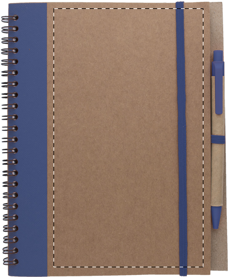 A5 Spiral-Notizbuch, 60 Seiten (blanko) und Kugelschreiber, blauschreibend, aus Recyclingpapier.Maße: 165×210×10 mmSchreibgerät-Typ: KugelschreiberSchreibfarbe: BlauLinienstärke: 1 mmMaterial: Recycling PapierGewicht: 70 g/m2Veredelungsposition 1: VorderseiteTechnologie: TintenstrahldruckDurchmesser: 0Druckcode: OPTechnologie: TampondruckMaximale Farben: 4Durchmesser: 0Druckcode: P2Technologie: SiebdruckMaximale Farben: 2Durchmesser: 0Druckcode: S1Veredelungsposition 2: RückseiteTechnologie: TintenstrahldruckDurchmesser: 0Druckcode: OPTechnologie: TampondruckMaximale Farben: 4Durchmesser: 0Druckcode: P2Technologie: SiebdruckMaximale Farben: 2Durchmesser: 0Druckcode: S1Veredelungsposition 3: Korpus - rechts vom ClipTechnologie: TampondruckMaximale Farben: 2Durchmesser: 0Druckcode: P2Veredelungsposition 4: Korpus - links vom ClipTechnologie: TampondruckMaximale Farben: 2Durchmesser: 0Druckcode: P2Veredelungsposition 5: Korpus - in Verlängerung vom ClipTechnologie: TampondruckMaximale Farben: 2Durchmesser: 0Druckcode: P2