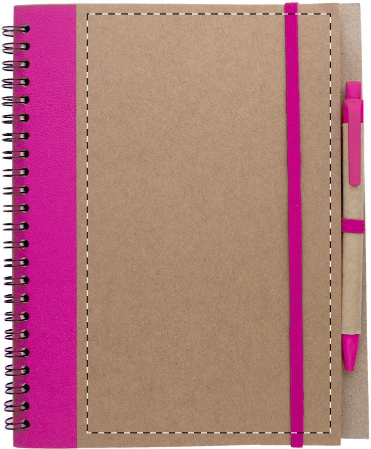 A5 Spiral-Notizbuch, 60 Seiten (blanko) und Kugelschreiber, blauschreibend, aus Recyclingpapier.Maße: 165×210×10 mmSchreibgerät-Typ: KugelschreiberSchreibfarbe: BlauLinienstärke: 1 mmMaterial: Recycling PapierGewicht: 70 g/m2Veredelungsposition 1: VorderseiteTechnologie: TintenstrahldruckDurchmesser: 0Druckcode: OPTechnologie: TampondruckMaximale Farben: 4Durchmesser: 0Druckcode: P2Technologie: SiebdruckMaximale Farben: 2Durchmesser: 0Druckcode: S1Veredelungsposition 2: RückseiteTechnologie: TintenstrahldruckDurchmesser: 0Druckcode: OPTechnologie: TampondruckMaximale Farben: 4Durchmesser: 0Druckcode: P2Technologie: SiebdruckMaximale Farben: 2Durchmesser: 0Druckcode: S1Veredelungsposition 3: Korpus - rechts vom ClipTechnologie: TampondruckMaximale Farben: 2Durchmesser: 0Druckcode: P2Veredelungsposition 4: Korpus - links vom ClipTechnologie: TampondruckMaximale Farben: 2Durchmesser: 0Druckcode: P2Veredelungsposition 5: Korpus - in Verlängerung vom ClipTechnologie: TampondruckMaximale Farben: 2Durchmesser: 0Druckcode: P2