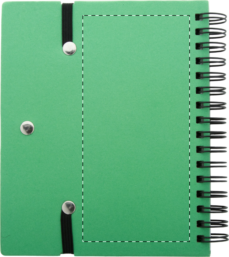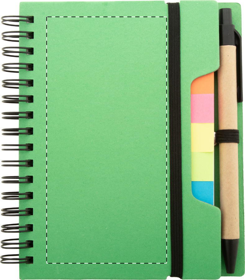 Spiralnotizbuch aus Recyclingpapier mit 70 linierten Blättern und 125 Seitenmarkern (in 5 verschiedenen Farben). Mit Gummiband und Stifthalter. A6-Größe. Inklusive Kugelschreiber aus Recyclingpapier mit blauschreibender Mine.Maße: 130×145×11 mmSchreibgerät-Typ: KugelschreiberSchreibgerät-Mechanik: DruckmechanikSchreibfarbe: BlauFormat: A6Papiertyp Notizbücher: Linierte SeitenMaterial: Recycling PapierVeredelungsposition 1: VorderseiteTechnologie: TampondruckMaximale Farben: 4Durchmesser: 0Druckcode: P2Technologie: SiebdruckMaximale Farben: 2Durchmesser: 0Druckcode: S1Veredelungsposition 2: RückseiteTechnologie: TampondruckMaximale Farben: 4Durchmesser: 0Druckcode: P2Technologie: SiebdruckMaximale Farben: 2Durchmesser: 0Druckcode: S1