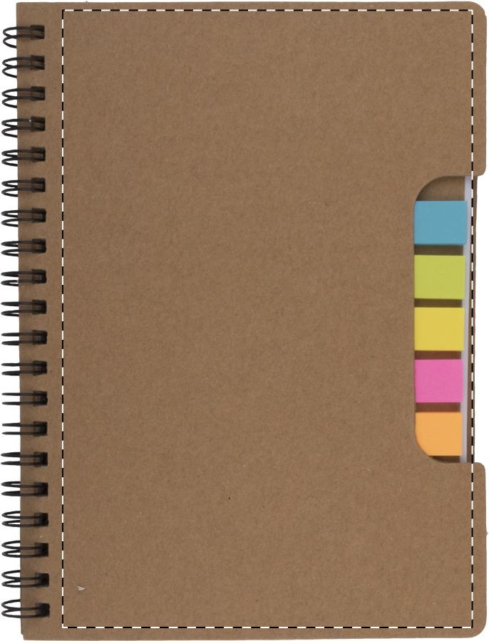 Notizbuch, 60 Seiten (liniert) aus Recyclingpapier mit Haftnotizen (5 x 25 Stk.).