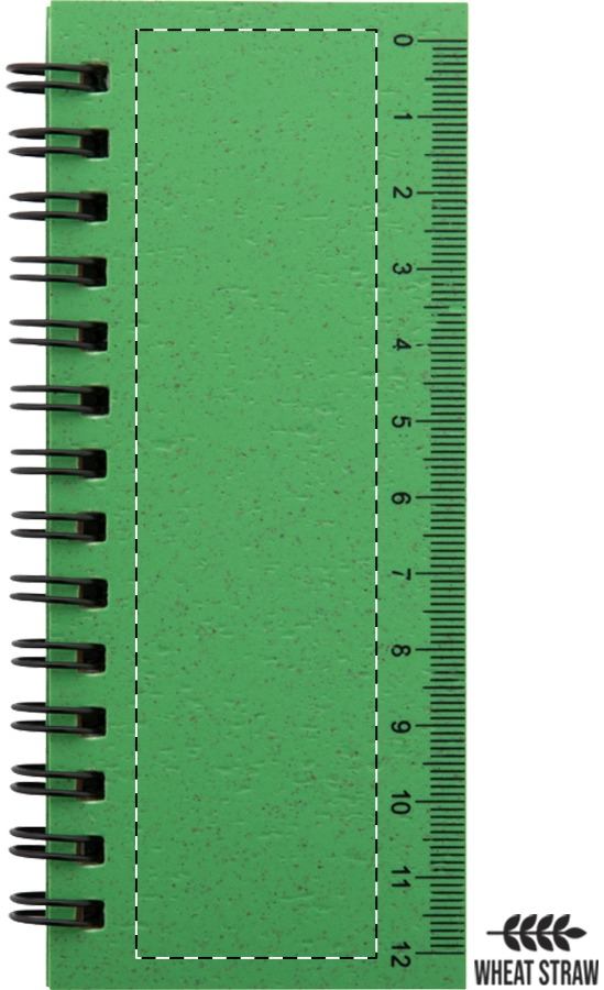Ökologisches, mit Einband aus Weizenstrohkunststoff, Spiralnotizbuch mit 40 linierten Blättern aus Recyclingpapier, 25 Haftnotizen und 125 Seitenmarkern (in 5 verschiedenen Farben). Mit 12 cm Lineal auf dem Einband.Maße: 54×130×8 mmPapiertyp Notizbücher: Linierte SeitenMaterial: Weizenstroh, Recycling PapierVeredelungsposition 1: VorderseiteTechnologie: TampondruckMaximale Farben: 4Durchmesser: 0Druckcode: P1Veredelungsposition 2: RückseiteTechnologie: TampondruckMaximale Farben: 4Durchmesser: 0Druckcode: P1