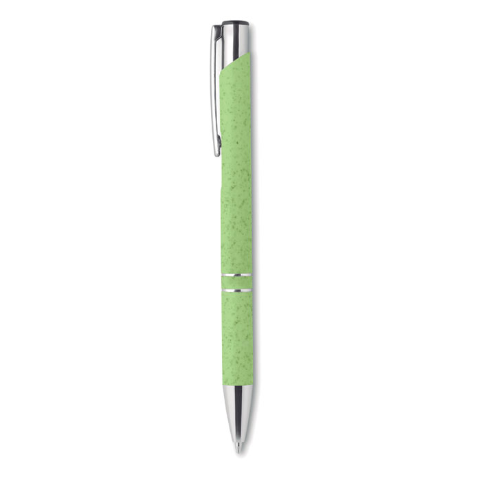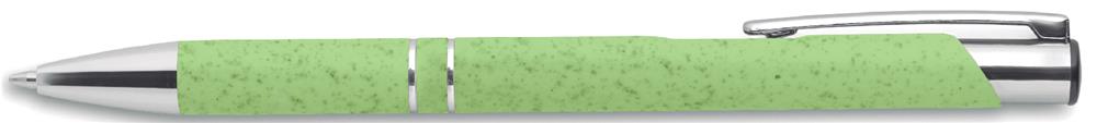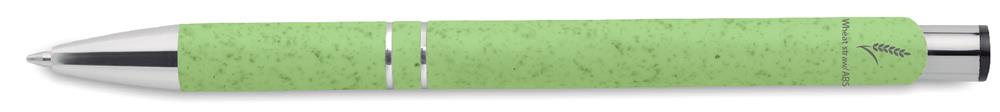 Druckkugelschreiber aus 50% Weizenstroh und 50% ABS-Material mit silbernen Details. Blaue Tinte.