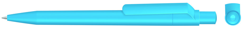 Druckkugelschreiber mit gedeckt mattem Gehäuse, Clip, Drücker und Stopfen.Druckbereich: Auf dem Clip 38mm x 8mm Tampondruck (T), auf dem Clip 38mm x 8mm Digitaldruck (HD), auf dem Clip 38mm x 8mm Reliefdruck (HD), in Clipverlängerung 38mm x 20mm Siebdruck (S), gegenüber vom Clip 70mm x 13mm Siebdruck (S), seitlich vom Clip 70mm x 13mm Siebdruck (S)