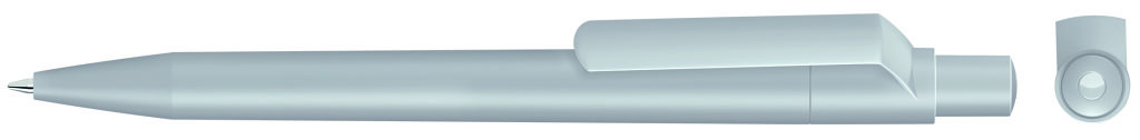 Druckkugelschreiber mit gedeckt mattem Gehäuse, Clip, Drücker und Stopfen.Druckbereich: Auf dem Clip 38mm x 8mm Tampondruck (T), auf dem Clip 38mm x 8mm Digitaldruck (HD), auf dem Clip 38mm x 8mm Reliefdruck (HD), in Clipverlängerung 38mm x 20mm Siebdruck (S), gegenüber vom Clip 70mm x 13mm Siebdruck (S), seitlich vom Clip 70mm x 13mm Siebdruck (S)