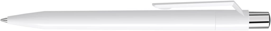 Druckkugelschreiber mit weiß gedeckt glänzendem Gehäuse, silber glänzendem Drücker und farbigem Stopfen.Druckbereich: Auf dem Clip 38mm x 8mm Tampondruck (T), in Clipverlängerung 38mm x 20mm Siebdruck (S), gegenüber vom Clip 70mm x 13mm Siebdruck (S), seitlich vom Clip 70mm x 13mm Siebdruck (S), auf dem Clip 38mm x 8mm Digitaldruck (HD), auf dem Clip 38mm x 8mm Reliefdruck (HD)