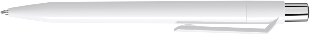 Druckkugelschreiber mit weiß gedeckt glänzendem Gehäuse, silber glänzendem Drücker und farbigem Stopfen.Druckbereich: Auf dem Clip 38mm x 8mm Tampondruck (T), in Clipverlängerung 38mm x 20mm Siebdruck (S), gegenüber vom Clip 70mm x 13mm Siebdruck (S), seitlich vom Clip 70mm x 13mm Siebdruck (S), auf dem Clip 38mm x 8mm Digitaldruck (HD), auf dem Clip 38mm x 8mm Reliefdruck (HD)