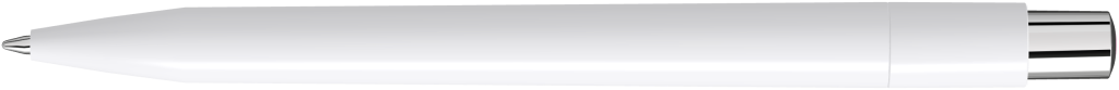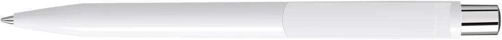 Druckkugelschreiber mit weiß gedeckt glänzendem Gehäuse, silber glänzendem Drücker und farbigem Stopfen.Druckbereich: Auf dem Clip 38mm x 8mm Tampondruck (T), in Clipverlängerung 38mm x 20mm Siebdruck (S), gegenüber vom Clip 70mm x 13mm Siebdruck (S), seitlich vom Clip 70mm x 13mm Siebdruck (S), auf dem Clip 38mm x 8mm Digitaldruck (HD), auf dem Clip 38mm x 8mm Reliefdruck (HD)