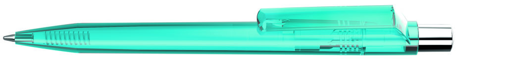 Druckkugelschreiber mit transparent glänzendem Gehäuse, silber glänzendem Drücker und farbigem Stopfen.Druckbereich: Auf dem Clip 38mm x 8mm Tampondruck (T), auf dem Clip 38mm x 8mm Digitaldruck (HD), auf dem Clip 38mm x 8mm Reliefdruck (HD), in Clipverlängerung 38mm x 20mm Siebdruck (S), gegenüber vom Clip 70mm x 13mm Siebdruck (S), seitlich vom Clip 70mm x 13mm Siebdruck (S)