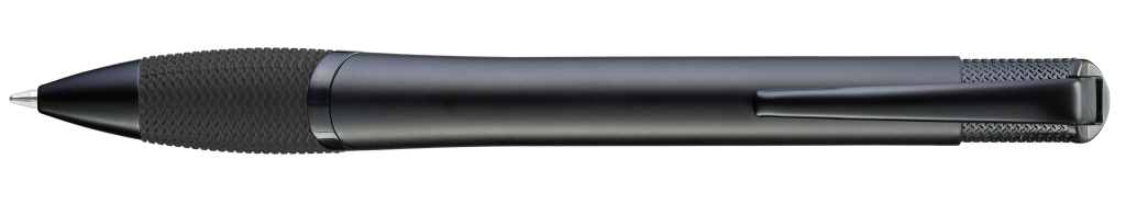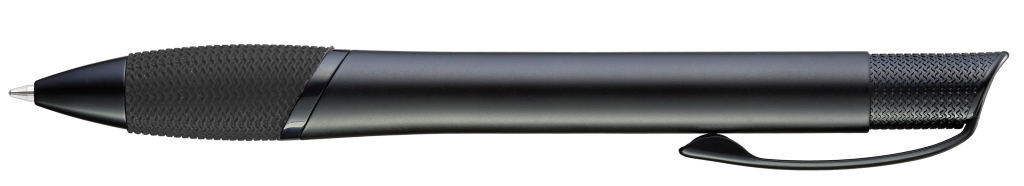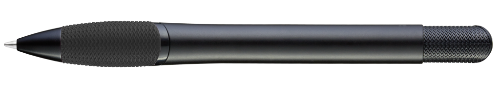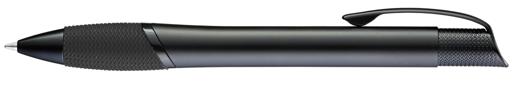 Metall-Druckkugelschreiber mit schwarz matt lackiertem Gehäuse, farbige Gummigriffzone und matt schwarzen Beschlagteilen.Druckbereich: In Clipverlängerung 25mm x 7mm Lasergravur (L), in Clipverlängerung 20mm x 13mm Siebdruck (MS), gegenüber vom Clip 50mm x 7mm Lasergravur (L), gegenüber vom Clip 45mm x 13mm Siebdruck (MS), seitlich vom Clip 50mm x 7mm Lasergravur (L), seitlich vom Clip 45mm x 13mm Siebdruck (MS), Druckfläche 60mm x 38mm Rundumlasergravur (RL), in Clipverlängerung 25mm x 7mm Einzelnamensgravur (EL), gegenüber vom Clip 50mm x 7mm Einzelnamensgravur (EL), seitlich vom Clip 50mm x 7mm Einzelnamensgravur (EL)