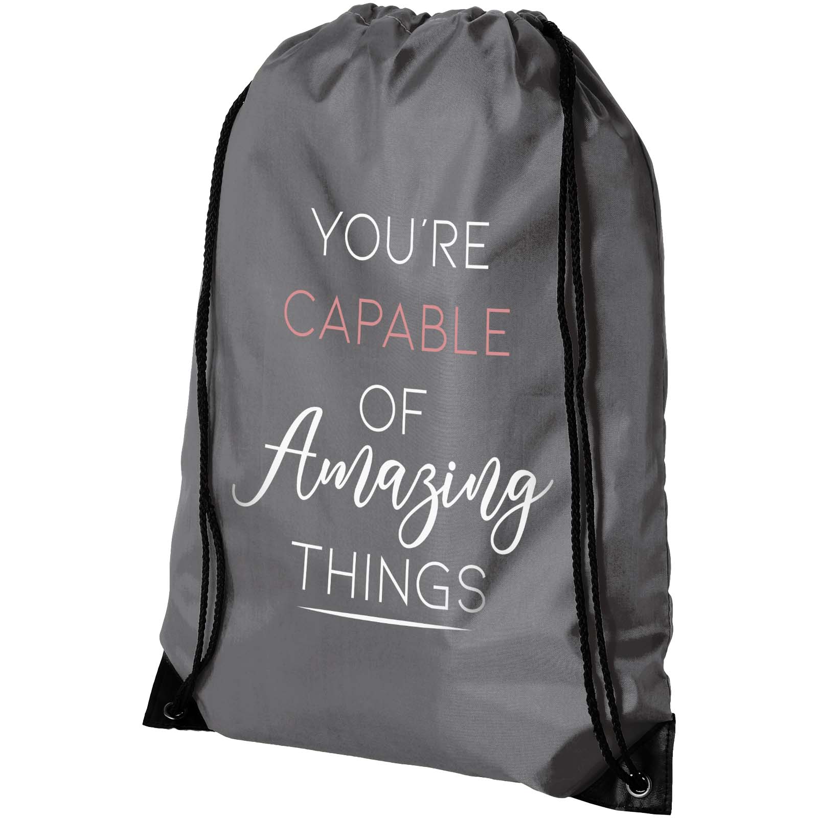Der Oriole Sportbeutel ist ein ideales Giveaway, um Ihre Marke oder Marketingkampagne zu bewerben. Dieser leichte Rucksack ist budgetfreundlich, lässt sich leicht auf dem Rücken oder über der Schulter tragen und bietet genügend Fläche für ein Logo oder andere Botschaften. Dank des Kordelzugs lässt er sich leicht öffnen und schließen, und das 210D-Polyestermaterial ist robust und langlebig.Besonderheiten:- Kapazität der Tasche: 12- Laptop-Fach: Nein- Widerstandsfähigkeit bis zu: 5 kg- Typ des Hauptetiketts: Gewebtes Hauptetikett- Affordable price: Yes- BSCIMaterial: 210D PolyesterGewicht: 45 gGröße: 33 x 44 cmStandard-Druck---------------Druckart: SiebdruckDruckposition: VorderseiteDruckgröße: 230 x 320 mm mm (BxH)Druckfarben maximal: 4Suchwörter: Zuhziehbeutel, Premium-Rucksack, Premium-Rucksäcke, Tasche, Taschen, Packsack, Reisetasche, Reisetaschen, Reise, Sportbeutel, Kordelzugbeutel, Rucksack, Rucksack mit Kordelzug, Kordelzugrucksack, Gymsack, Gymbag, Sportturnbeutel, Trainingsbeutel, turnbeutel