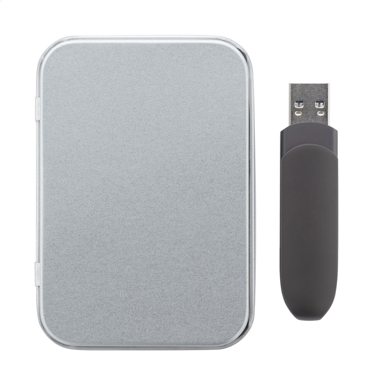 Twist OTG USB-Stick im Metallgehäuse mit 16/32 GB Speicher. Mit USB- und USB-C-Anschlüssen. Einzeln in Blechdose. USB 2.0.