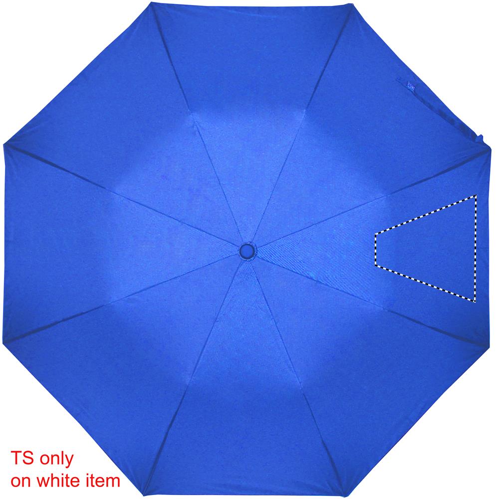 21'' Regenschirm aus 190T Seide. Windbeständig. Gestell aus verzinktem Stahl. Schienen aus schwarzem Fiberglas, Spitzen aus verchromtem Metall. Schwarz gummierter Griff mit Doming. 3fach faltbar. Passende Schirmhülle. Automatische Öffnung und Schließung.Material: MetallMaße: Ø97x56.7cmGewicht: 0.361 kgVeredelung: Bestickung, Bedruckung, BeflockungHandling/Farbcodes: B/03, 04, 05, 07, 37, 06Druckposition: SEGMENT1Druckmaße: 210 x 210 mmDrucktechniken: TR, TS3, S7, T1, TD1Druckposition: SEGMENT2Druckmaße: 210 x 210 mmDrucktechniken: S7, T1, TD1, TS3, TRDruckposition: SEGMENT3Druckmaße: 210 x 210 mmDrucktechniken: TR, TS3, S7, T1, TD1Druckposition: SEGMENT4Druckmaße: 210 x 210 mmDrucktechniken: TS3, TR, S7, T1, TD1Druckposition: POUCHDruckmaße: 80 x 40 mmDrucktechniken: TR, TS3, S6, T1, TD1